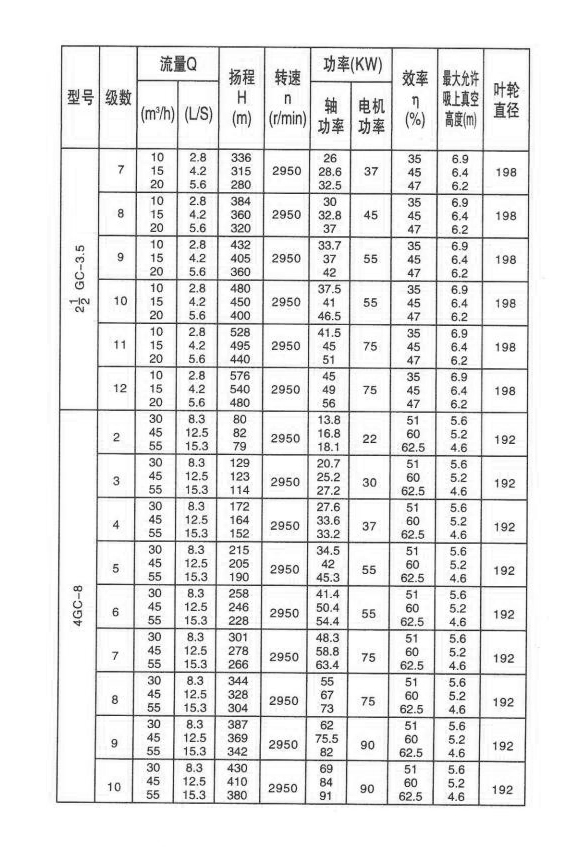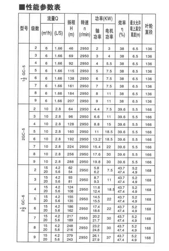 GC型(xing)水泵為單吸(xī)多級離心泵(beng),可輸送最高(gāo)溫度為110℃清水(shui)🧑🏽🤝🧑🏻或物理化學(xue)性質類似清(qīng)水的液體之(zhi)用,适用于鍋(guo)爐給水、工廠(chǎng)、城市及礦🔱山(shān)井下提水排(pai)水。揚程為46米(mǐ)至476米,流量為(wéi)6米3/小時一55米(mi)3/小時。